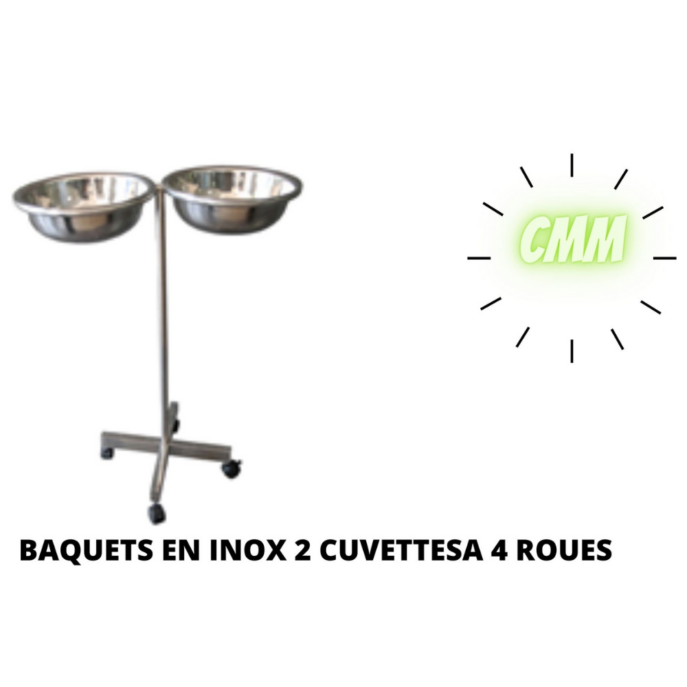 BAQUETS EN INOX 2 CUVETTESA 4 ROUES